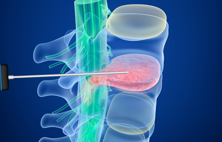A laser fiber is inserted through a fine needle into the disc. Laser energy vaporizes a small part of the disc’s core, reducing internal pressure and relieving nerve compression.